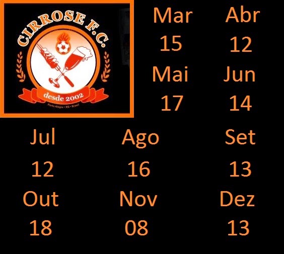 A Diretoria do Cirrose Futebol Clube divulgou, no início de março, as datas das partidas oficiais do Cirrose na Temporada 2015.